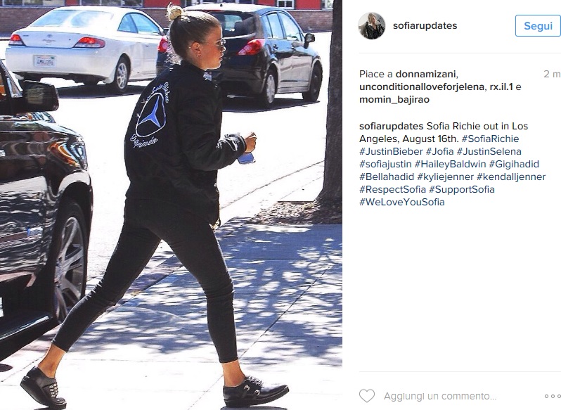 LOS ANGELES – Sofia Richie: sola e triste dopo litigio Justin – Selena FOTO. È finita suo malgrado al centro di gossip e polemiche. Le ultime ore sono state per Sofia Richie un vero ciclone: prima la storia d’amore svelata a tutto il mondo con Justin Bieber, poi i migliaia di insulti da parte delle Beliebers su Instagram. Infine, il drammatico litigio tra Justin e Selena culminato con la drastica decisione del cantante di cancellarsi da Instagram. In questo vortice ci è finita, volente o nolente, proprio Sofia Richie che tuttavia non sarà certo nuova alla vita di gossip e sotto i riflettori, essendo figlia niente meno che del cantante di fama mondiale Lionel Richie e sorellastra dell’altrettanto famosa Nicole Richie.