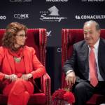 MEXICO Mexico City, Sept. 19, 2014 Italian actress Sophia Loren (L), talks with Mexican businessman Carlos Slim Helu during the inauguration of an exhibition held in her honor at the Soumaya Museum in Mexico City, capital of Mexico, Sept. 18, 2014. Loren is in Mexico to celebrate her 80th birthday and participate in a variety of events, according to local press.Zuma press/LaPresseOnly Italy