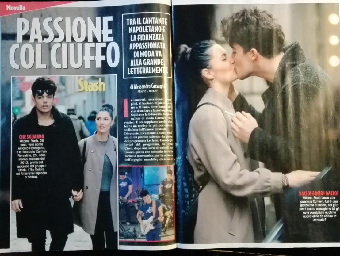 Stash dei Kolors innamorato pazzo: bacia Carmen Fiorentino. Foto Novella 2000. Il settimanale di gossip ha pubblicato una serie di scatti in cui il cantante si lascia andare a teneri abbracci e baci con la sua compagna, giornalista del settore moda. Insomma, sebbene non abbia mai nascosto di tenere alla sua privacy per quel che riguarda la vita sentimentale, Stash non è riuscito a sfuggire ai paparazzi. Rimarrà deluso chi ipotizzava che, una volta raggiunto il successo, il frontman avrebbe detto addio alla sua fidanzata. Invece eccoli qui, più uniti che mai.