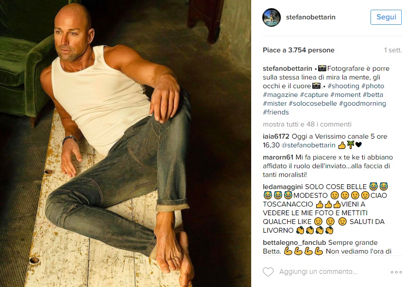 Per quanto riguarda la sua vita privata, Stefano Bettarini è sempre stato considerato uno dei calciatori più affascinanti della serie A negli anni 2000. Alto 185 cm, Stefano ha un fisico statuario e occhi azzurro ghiaccio che hanno rapito il cuore di migliaia di tifose in tutta Italia e che seguono con dedizione l’ex calciatore sul suo profilo Facebook. Stefano Bettarini è stato sposato dal 1998 al 2008 con la nota conduttrice tv Simona Ventura e insieme hanno riempito le pagine di gossip in quegli anni. I due hanno avuto due figli insieme, il 18enne Niccolò (che in questo momento sta riempiendo le cronache di gossip per la sua bellezza che sta facendo strage di cuori tra le teenager) e Giacomo, 16 anni.