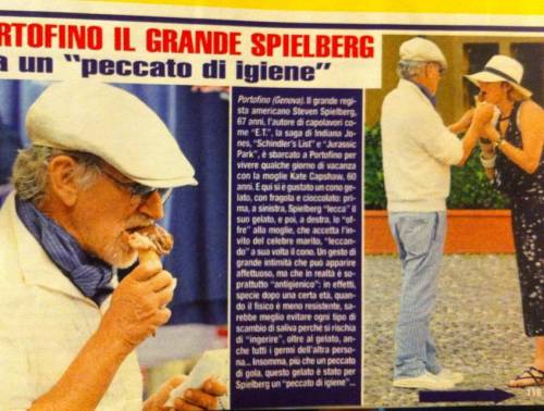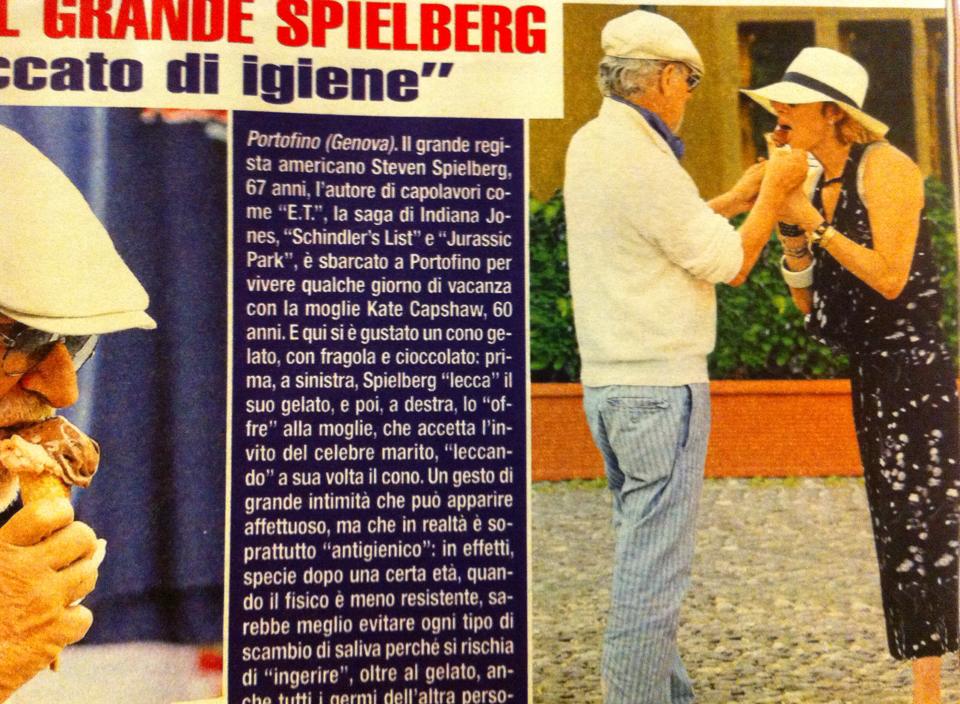 PORTOFINO – Lecca il gelato e poi lo offre alla moglie, la quale accetta con piacere e lo lecca a sua volta. Non lo avessero mai fatto: Steven Spielberg e la moglie Kate Capshaw sono stati protagonisti di scenetta apparentemente comunissima e che invece ha alzato un vespaio di polemiche. Il motivo, secondo quanto si legge su “Di Più”, sarebbe igienico, o meglio, antigienico:
