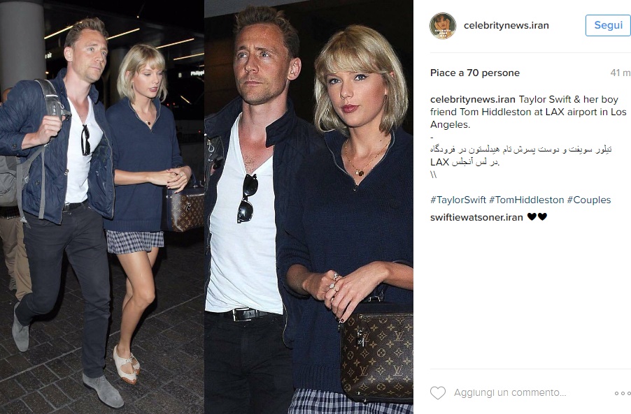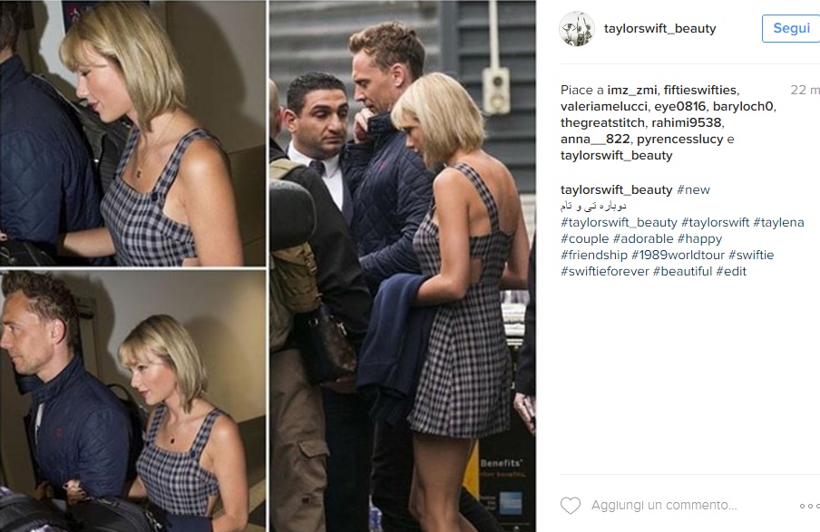 Dopo la fine della storia d’amore di Taylor con Calvin Harris, che ha fatto sognare migliaia di ragazze in tutto il mondo, sembra proprio che la cantante abbia trovato un nuovo amore. È Tom Hiddleston, classe ’81, attore britannico considerato tra i più affascinanti al mondo famoso per aver interpretato Loki del Marvel Cinematic Universe, ad aver fatto battere il cuore della Swift. Secondo i rumors, galeotto fu l’incontro tra i due al MetGala 2016, quando si sono incontrati lo scorso maggio. In effetti tra i due era apparsa grande complicità, soprattutto quando furono ripresi mentre ballavano scatenati sulle note di Crazy In Love di Beyoncé. Tutto, mentre la cantante era ancora (felicemente?) fidanzata con il famosissimo dj Calvin Harris. Chi lo avrebbe detto che quel giorno si sarebbe trasformato in qualcosa di più tra Taylor e il bellissimo e affascinante attore britannico? Ora, vedendo queste foto, sembra proprio che quello che fino ad oggi era solo un rumors sia diventato una storia d’amore vera. Dopotutto, la complicità tra i due e i baci al Colosseo sono più che reali. (Foto: Instagram).