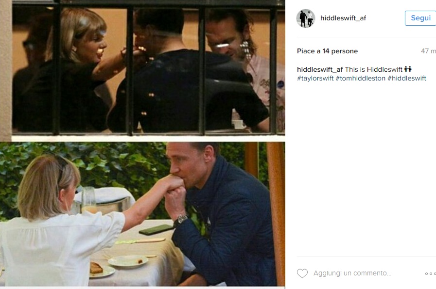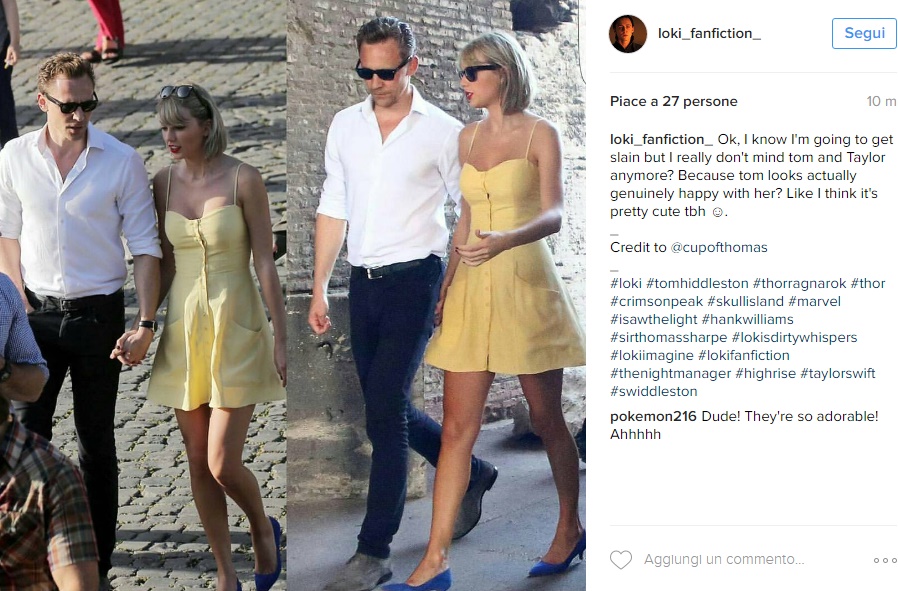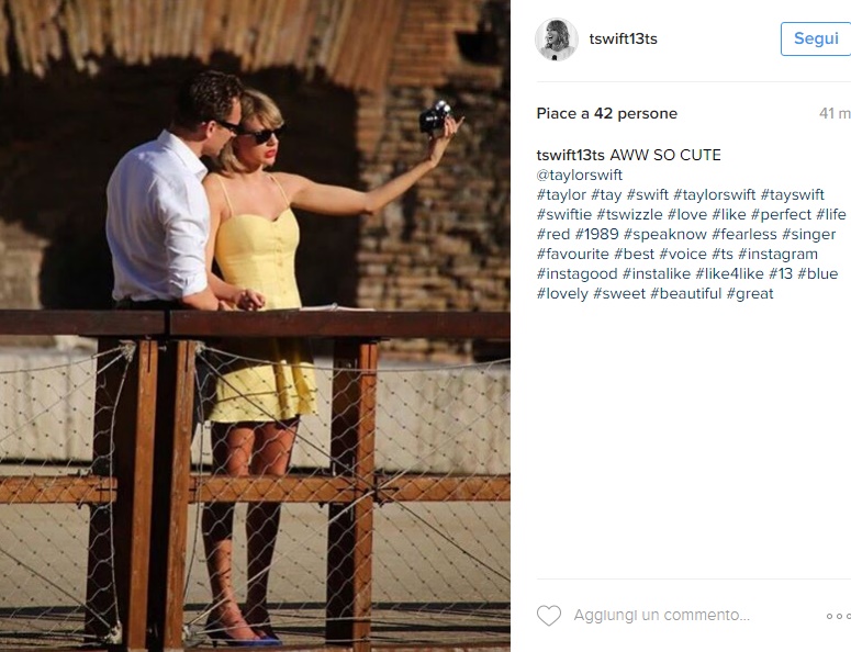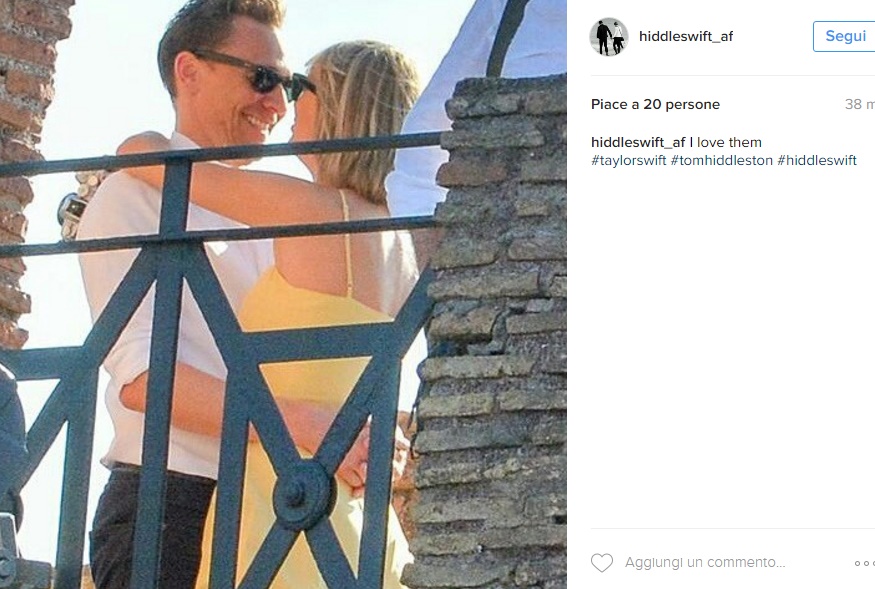 Dopo la fine della storia d’amore di Taylor con Calvin Harris, che ha fatto sognare migliaia di ragazze in tutto il mondo, sembra proprio che la cantante abbia trovato un nuovo amore. È Tom Hiddleston, classe ’81, attore britannico considerato tra i più affascinanti al mondo famoso per aver interpretato Loki del Marvel Cinematic Universe, ad aver fatto battere il cuore della Swift. Secondo i rumors, galeotto fu l’incontro tra i due al MetGala 2016, quando si sono incontrati lo scorso maggio. In effetti tra i due era apparsa grande complicità, soprattutto quando furono ripresi mentre ballavano scatenati sulle note di Crazy In Love di Beyoncé. Tutto, mentre la cantante era ancora (felicemente?) fidanzata con il famosissimo dj Calvin Harris. Chi lo avrebbe detto che quel giorno si sarebbe trasformato in qualcosa di più tra Taylor e il bellissimo e affascinante attore britannico? Ora, vedendo queste foto, sembra proprio che quello che fino ad oggi era solo un rumors sia diventato una storia d’amore vera. Dopotutto, la complicità tra i due e i baci al Colosseo sono più che reali. (Foto: Instagram).
