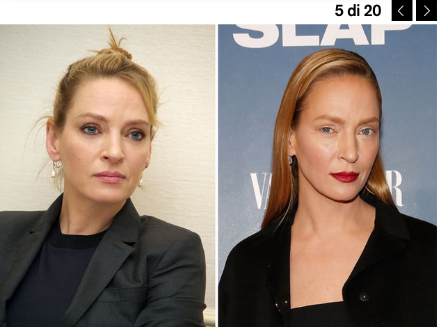 Alla presentazione di una serie tv la Thurman è apparsa diversa, visibilmente diversa. Proviamo a capire cosa è successo. Repubblica.it ci viene incontro mettendo a confronto una foto recente dell’attrice con la foto “incriminata”.