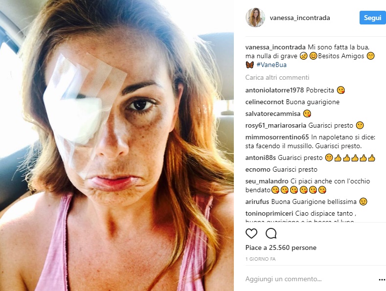 “Mi sono fatta la bua, ma nulla di grave” aveva scritto la Incontrada in merito alla foto in cui appariva con l’occhio bendato. Poche ore dopo Vanessa ha voluto spiegare l’accaduto perché i suoi fan si erano allarmati non poco. In un video esplicativo, Vanessa ha spiegato: