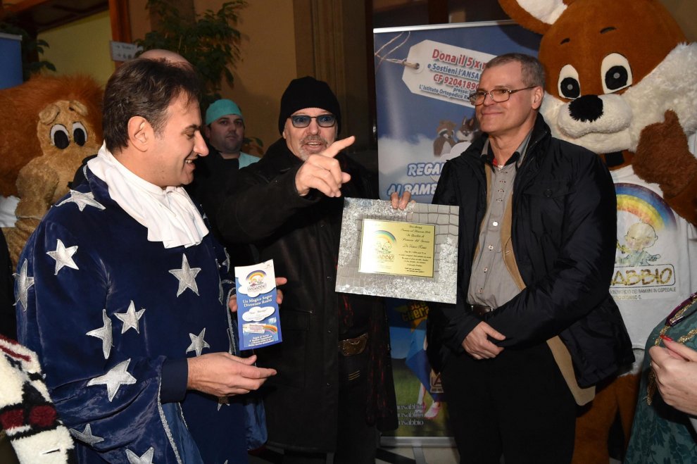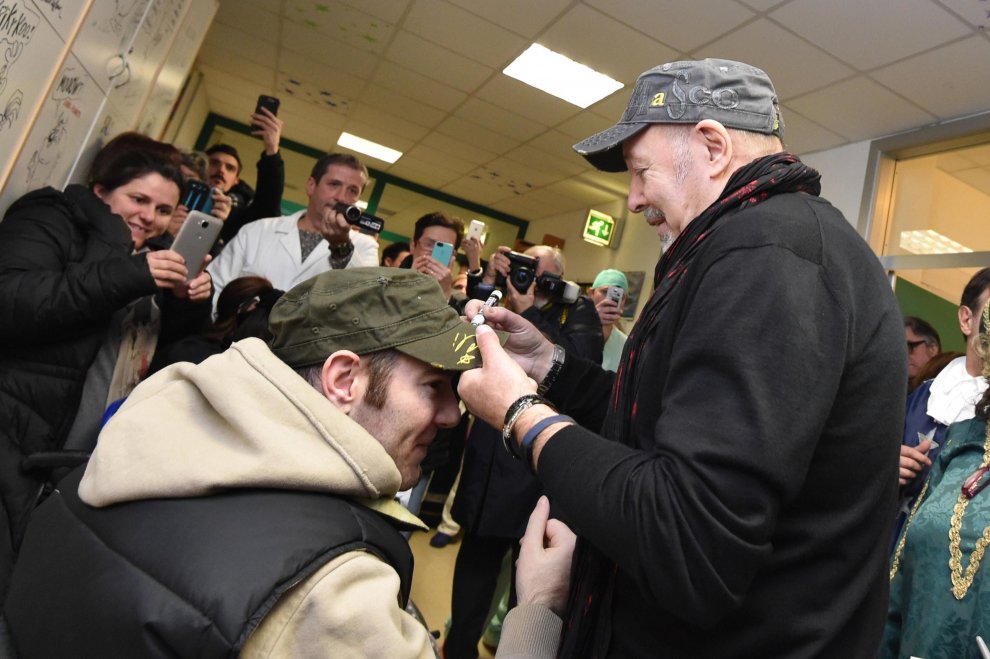 Così Vasco Rossi all’ingresso dell’Istituto ortopedico Rizzoli di Bologna, dove nel pomeriggio di mercoledì 20 gennaio si è recato insieme al leader degli Stadio, Gaetano Curreri, per far visita ai piccoli pazienti nell’ambito di ‘Star-Therapy’, iniziativa promossa dalla onlus Ansabbio e giunta alla 21 esima edizione. Il Blasco e Curreri hanno fatto un giro in alcuni reparti dell’ospedale, accompagnati dal personale medico e dai volontari dell’associazione, salutando i degenti e regalando abbracci, sorrisi e foto ricordo. A chi, prima di entrare, gli ha chiesto cosa avrebbe detto ai bambini, Vasco ha risposto: “Che gli voglio bene” (le foto Ansa alla fine del pezzo).