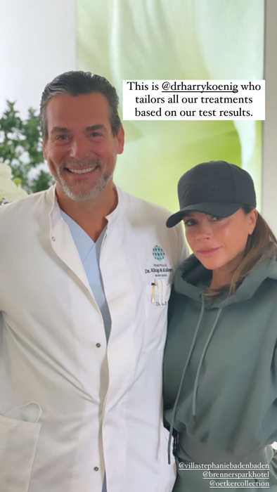 Victoria ha poi condiviso una sua foto insieme al medico che ha scelto per lei e il marito David trattamenti su misura durante il loro soggiorno.