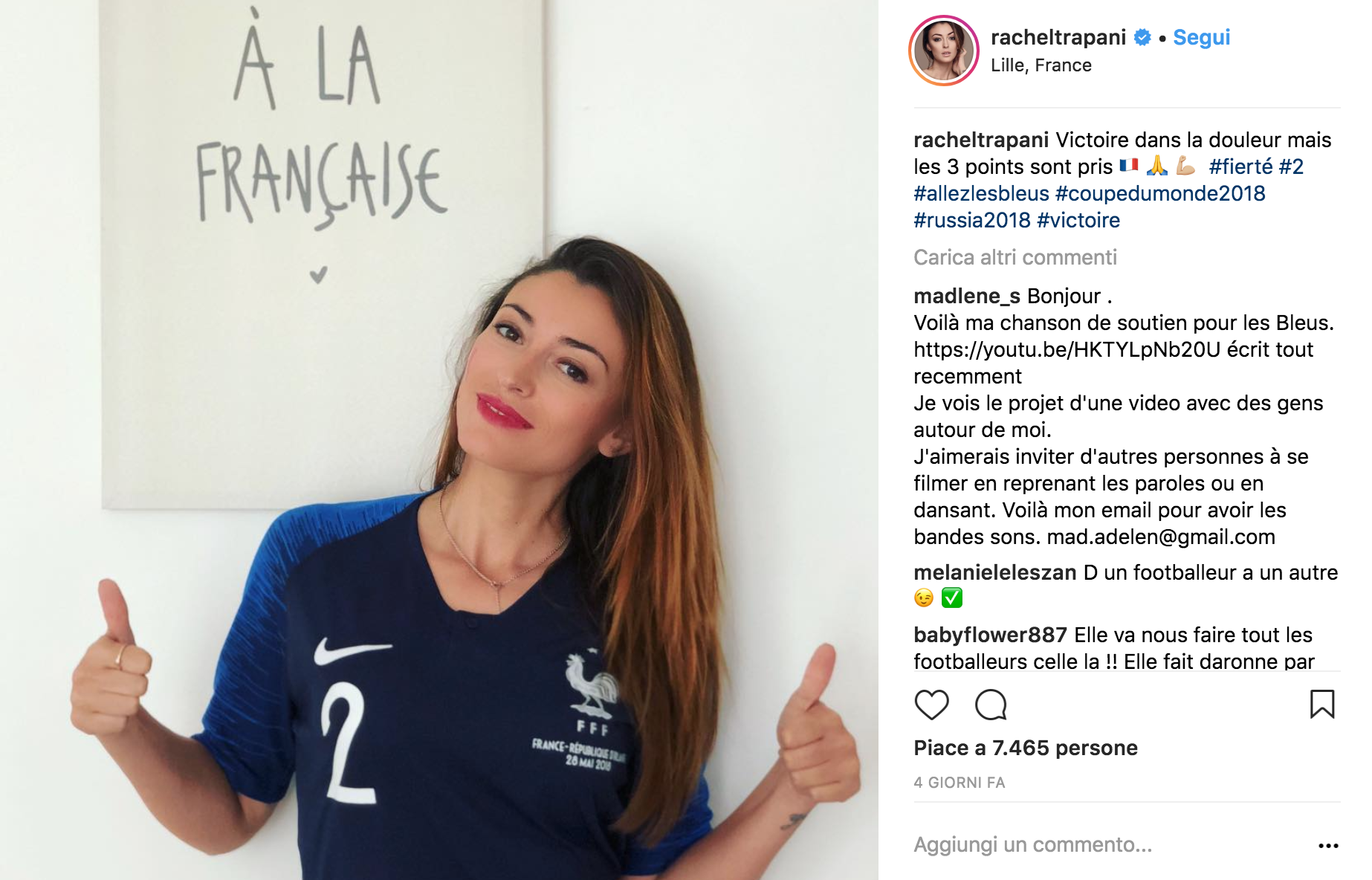 Ai Mondiali di Russia le wags francesi sono tra le più apprezzate. In fondo stiamo parlando di donne del calibro di Pamela Anderson, compagna di Rami, e la “new entry” Charlotte Pirroni, ex Miss Costa Azzurra e compagna di Thauvin. Per non parlare della bellissima Rachel Trapani, compagna del difensore dello Stoccarda Benjamin Pavard, o di Marrion Areola, moglie di Alphonse, il famosissimo portiere del Paris Saint Germain o ancora Marine, moglie del portiere Hugo Lloris.
