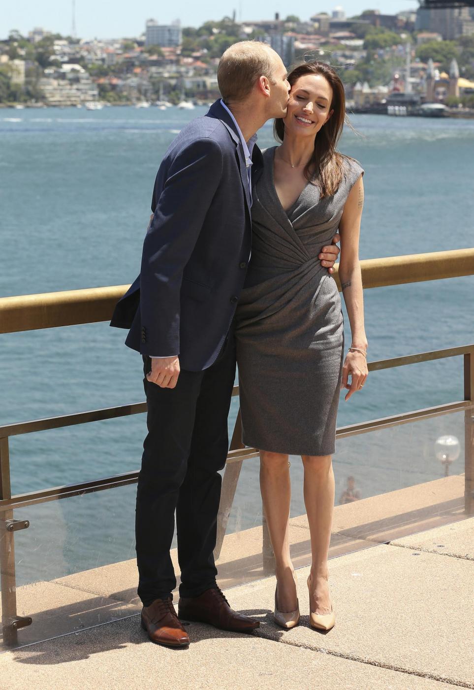 Angelina Jolie a Sydney per la conferenza del film ''Unbroken''Angelina Jolie, who directed and produced the film "Unbroken," receives a kiss from actor Geoff Evans at a photo session after a press conference following the movie’s world premiere in Sydney, Australia, Tuesday, Nov. 18, 2014. (AP Photo/Rob Griffith)