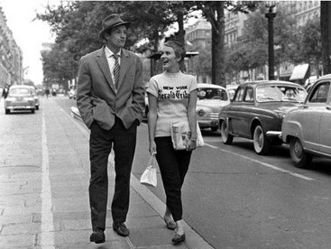 Jean Seberg e Jean Paul Belmondo in una foto di scena del film "A' bout de souffle" di Raymond Cauchetier