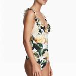 Il secondo modello da tenere d’occhio è senza dubbio quello più romantico con maxi rose stampate e ruches sul décolleté. Il tocco di classe? la schiena nuda… per un effetto smarty ma incredibilmente sensuale! Perfetto da abbinare a pantaloni a vita alta e scarpe casual per un tocco glamour. Mi raccomando, non dimenticate il make up: occhi neutri e attenzione focalizzata sulle labbra rosso fuoco.