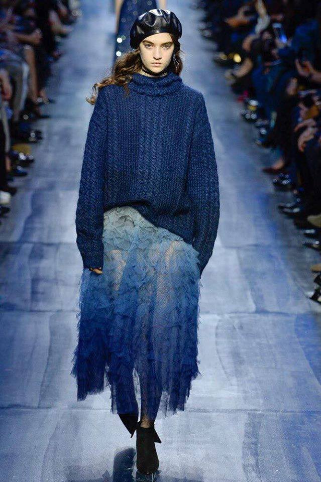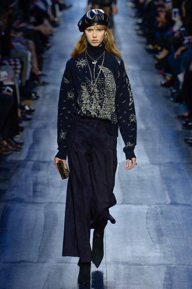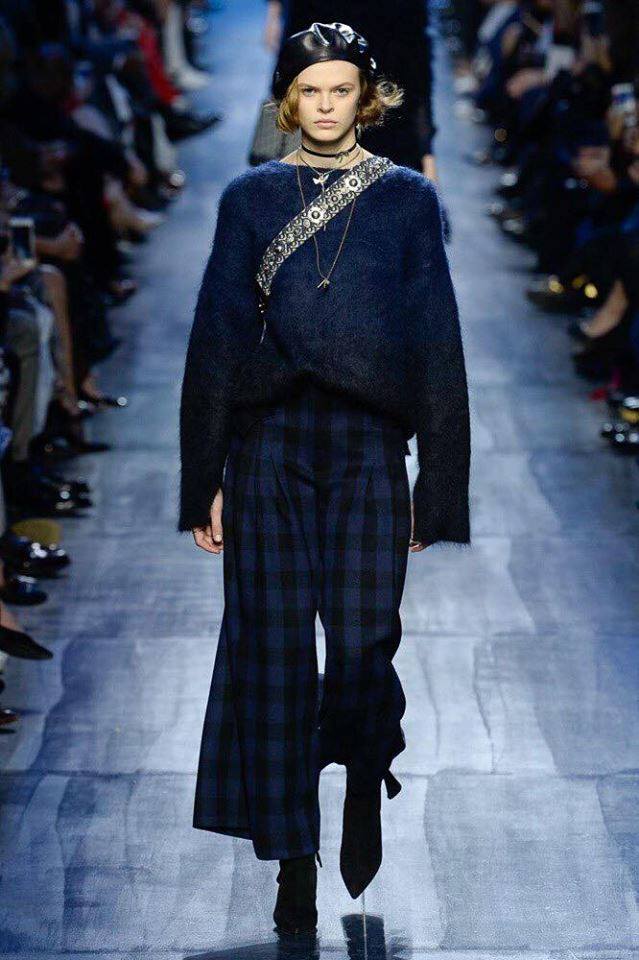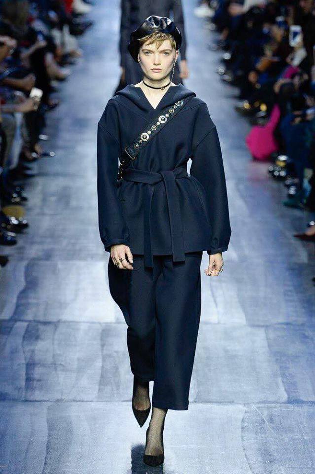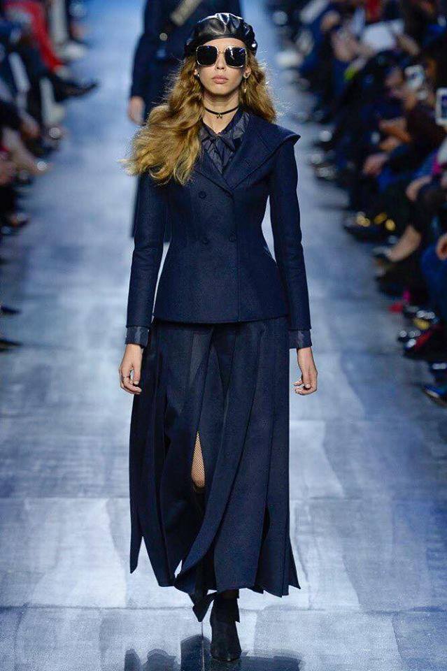La donna di Maria Grazia è bella, e in gamba ma ancora una volta, proprio come la collezione d’esordio, non appassiona. La collezione è ben confezionata e portabile, non mancano i tocchi commerciali delle t-shirt con scritte appositamente studiati per le IT Girl ma nel complesso non fa battere il cuore. L’ampio uso del blu ricorda a tratti Giorgio Armani, a tratti la nuova collezione Max Mara che, tuttavia, quest’anno ci ha emozionati qualcosina in più. Persino il basco, che rappresenta la Francia, non è certo una novità in passerella e sembra preso in prestito da Sonia Rykiel.