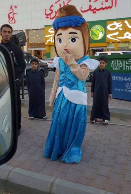 “Non indossava infatti l’abbigliamento islamico imposto alle donne nell’ultra conservatrice Arabia Saudita e per questo, oltre al fatto che per la sharia non è accettabile che un uomo si finga donna, è stato valutato come “inappropriato”. La mascotte stava sfilando davanti a un negozio di dolciumi appena inaugurato con l’intento di attirare clienti, ma la polizia ha bloccato il lavoratore in costume e – ancora vestito – lo ha fatto salire su una volante”.