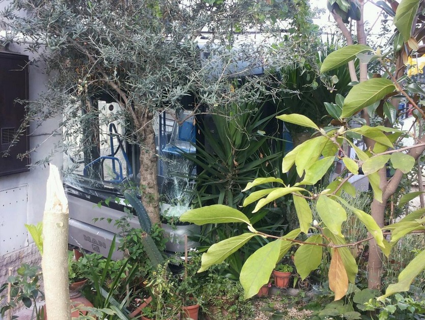 I residenti, inizialmente impauriti e poi incuriositi, hanno iniziato a fotografare la scena che si è presentata davanti ai loro occhi: un autobus in mezzo ai rovi di alberi all’interno di una casa.