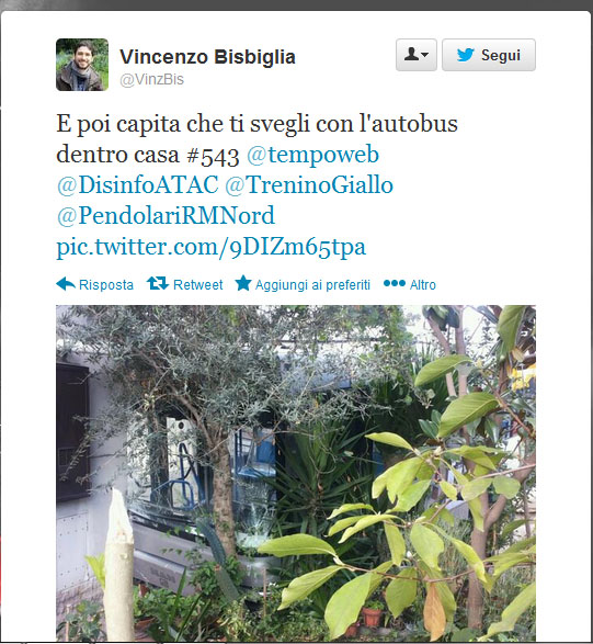 Il giornalista de Il Tempo, Vincenzo Bisbiglia, ha postato su twitter la foto dell’autobus all’interno del giardino. Sul posto sono intervenuti gli agenti del V gruppo Prenestino.
