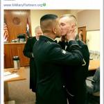 “(…)quello che sarebbe dovuto essere un “affare privato” è diventato (…) un evento collettivo che ha coinvolto decine di migliaia di americani. La foto del loro primo – e appassionato – bacio da neo-sposi, infatti, è stata pubblicata sulla pagina Facebook dell’American Military Partner Association, l’associazione che – come si legge sul loro sito – “rappresenta e sostiene le famiglie militari moderne”, le famiglie arcobaleno in cui uno, o (come in questo caso) entrambi i partner, vestono l’uniforme e difendono ogni giorno la bandiera degli Stati Uniti”.