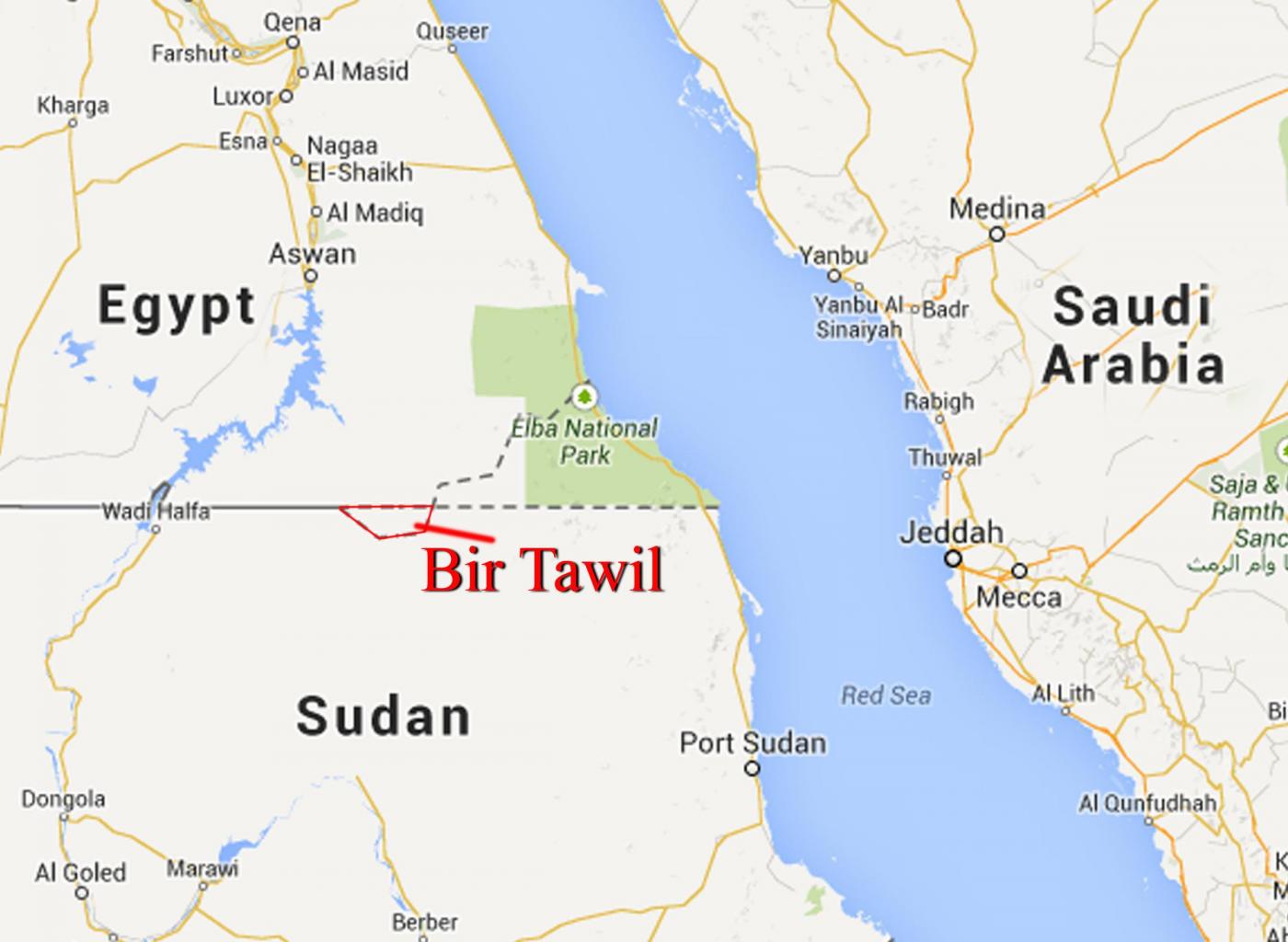 A map, provided by Jeremiah Heaton, July 2, 2014 in Abingdon, Va, shows the area of Bir Tawil between the Egyptian and Sudan border. The Heaton family is claiming a piece of land in the Eastern African region of Bir Tawil. (AP Photo/The Bristol Herald Courier, David Crigger)