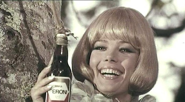 Una immagine della pubblicità della birra Peroni interpretata da Solvi Stubing dal 1967 al 1972 . Solvi Stubing è morta a Roma nella casa in cui viveva da tanti anni a 76 anni, Roma 3 luglio 2017 ANSA / UFFICIO STAMPA PERONI