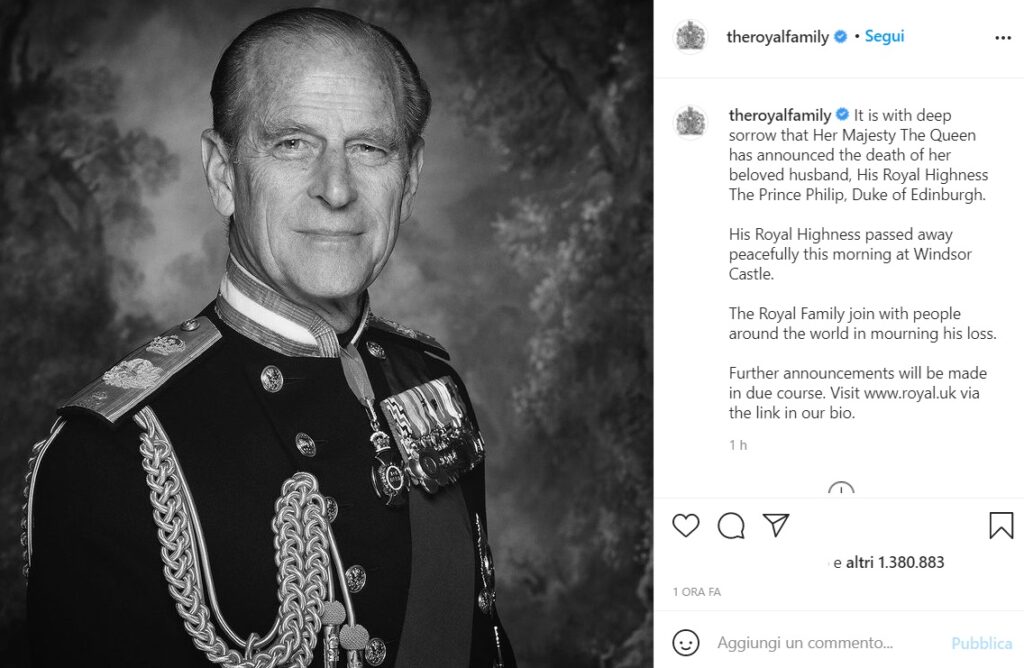 “È con profondo dolore che Sua Maestà la Regina ha annunciato la morte del suo amato marito, Sua Altezza Reale il Principe Filippo, Duca di Edimburgo”, si legge nella dichiarazione. “Sua Altezza Reale è morta pacificamente questa mattina al Castello di Windsor. La Famiglia Reale si unisce alle persone di tutto il mondo in lutto per la sua perdita”.