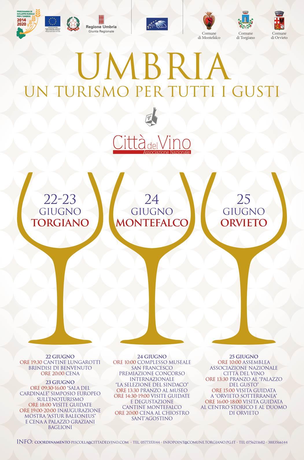 Durante la Convention un altro appuntamento da non perdere è con il banco d’assaggio dei vini vincitori del concorso enologico internazionale La Selezione del Sindaco, in programma sabato 24 giugno a Montefalco (Pg) presso il complesso museale San Francesco. Grande novità di questa XVI edizione del concorso è l’ottimo risultato ottenuto dai vini portoghesi che si sono aggiudicati le prime tre Gran Medaglie d’Oro. In degustazione anche vini delle regioni italiane e da Croazia, Germania, Azerbaijan, etc.Domenica 25 giugno, infine, a Orvieto (Tr) l’Assemblea dei sindaci delle Città del Vino e una visita guidata ai sotterranei della cittadina e al Duomo.
