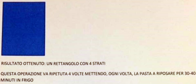 Ci eravamo fermati al tipo di pastello e panetto, per capire poi come sfogliare. Abbiamo detto che la stratificazione panetto/pastello è fondamentale per ottenere un buon risultato, per cui la corretta esecuzione della piegatura come abbiamo visto anche nei lievitati diventa essenziale.