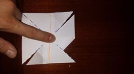 Piegare sulla linea di mezzeria arancione e portare l’angolo verso il centro e fare aderire bene.