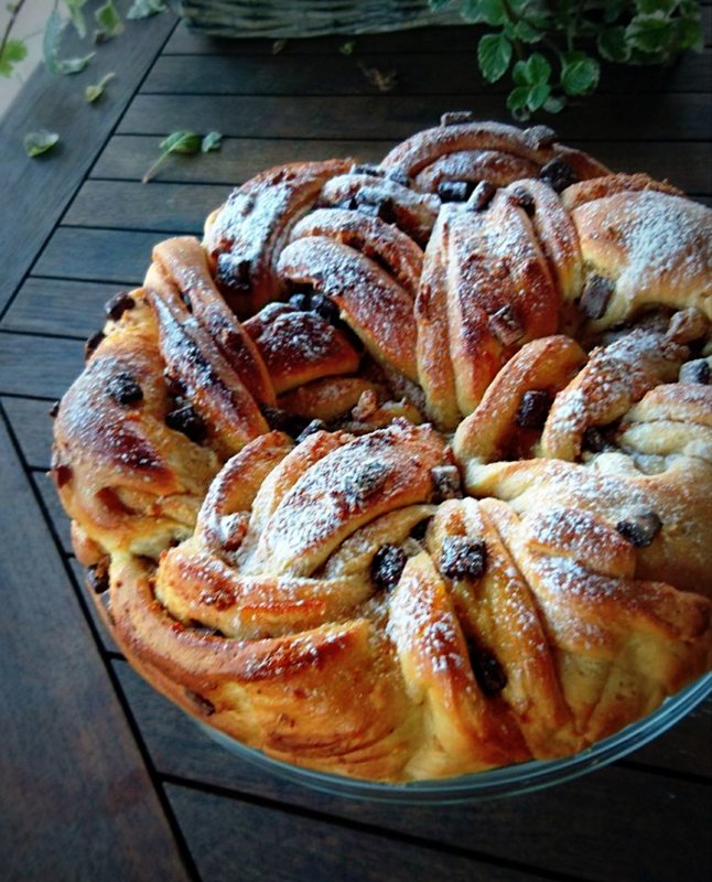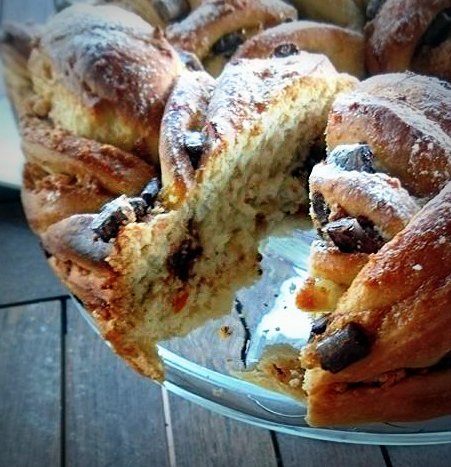 Si tratta di una nota ricetta delle Sorelle Simili, in questo caso rivisitata, perché il dolce originale prevede uvetta e arancia candita al suo interno, mentre in questo caso si è optato per le pepite di cioccolato e gli amaretti, rendendola ancora più golosa.