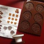 Temperare il cioccolato con il metodo della inseminazione ogni varietà per conto suo, colare negli stampi facente parte del kit biscotti e mettere in frigo, si otterranno dei medaglioni.