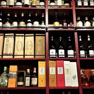 Superato qualche gradino si entra nella piccola sala delle degustazioni, circondata da scaffali al centro della quale protagonista è un tavolo per circa 10 persone; e per finire la terza sala, anch’essa rivestita di scaffali con prodotti gastronomici e bottiglie e arredata con grandi panche.