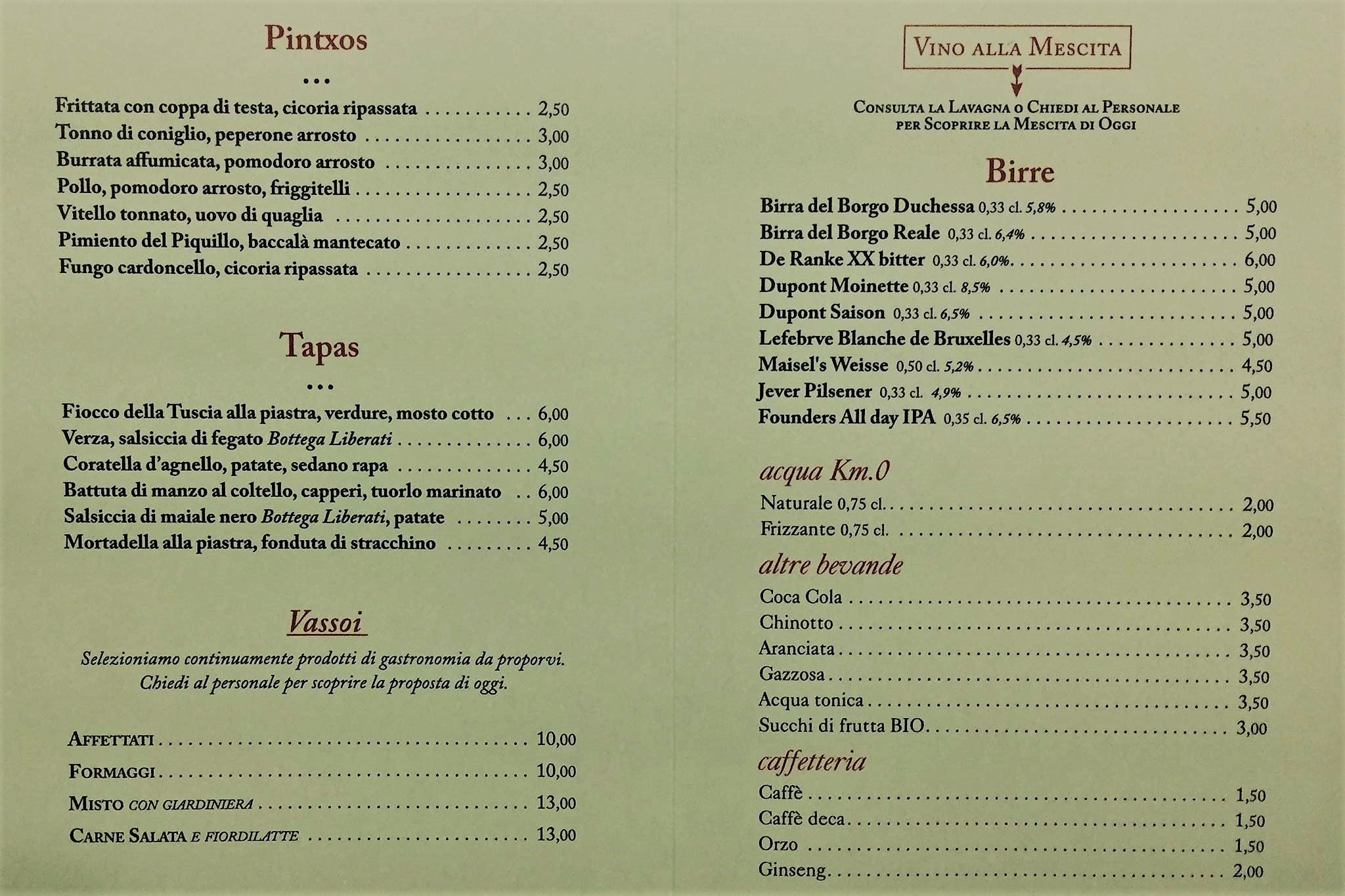 La cucina è impostata su due offerte ben distinte, a seconda del momento della giornata e della scelta del cliente, sfiziosa o più ordinaria: la carta delle tapas e la carte dei piatti espressi.