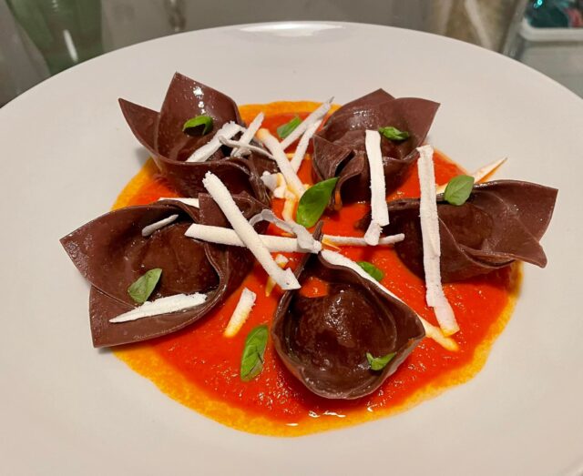 Roma, Cappellacci al Cacao ripieni di Melanzane