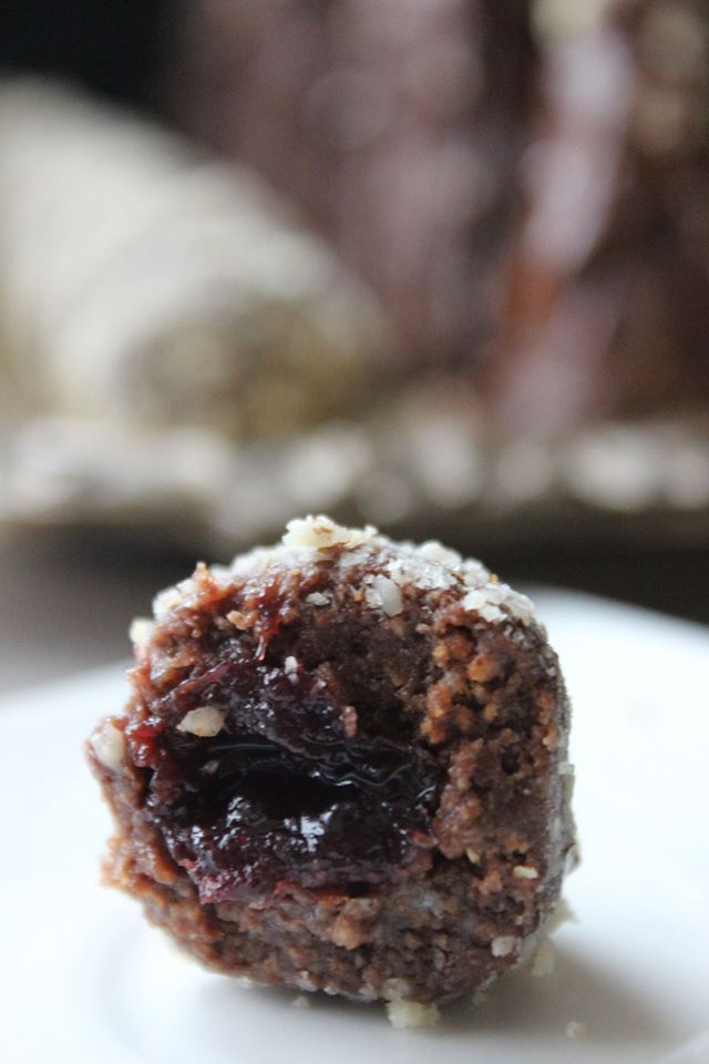 Prendere circa 20 g di impasto, appiattirlo sul palmo della mano, mettere sopra una amarena sciroppata, asciugata bene dallo sciroppo, formare a pallina e rotolare bene nelle noci tritate.