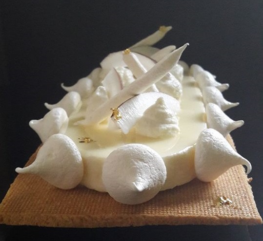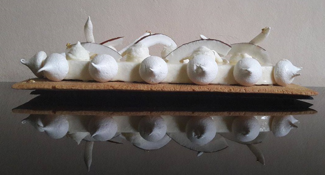 Samantha Zanutto ci propone un piccolo gioiellino di pasticceria del Maestro Gianluca Fusto dal nome esotico Coco de Mere… come esotici sono i suoi profumi e i suoi sapori che scaturiscono da una leggerissima ganache montata al cocco adagiata su di un friabile biscotto al limone e cannella.