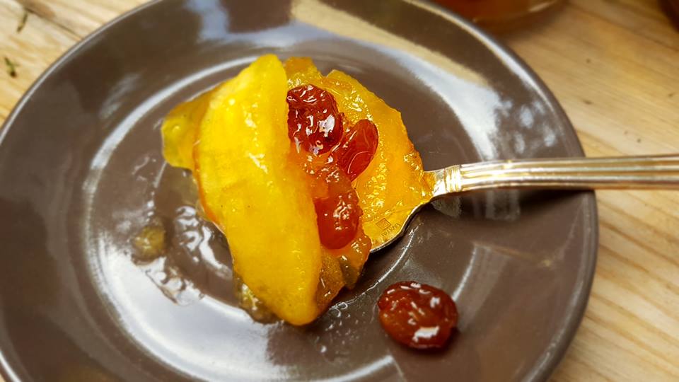 Una confettura estremamente raffinata, colma di aromi e sapori, la consistenza delle mele sciroppate ancora sode al morso e che sprigionano tutto il sapore dei boschi dell’Etna dalle quali provengono, le mandorle di Avola, una produzione nota al mondo, pinoli e uvetta rinvenuta nel rum, creano una confettura incredibile… Non so quanto sia fattibile spalmarla su una fetta biscottata o un biscottino, credo si possa gustare al cucchiaio proprio come una coccola per star bene, per riconciliarci in serenità e dolcezza con il mondo… pura poesia!