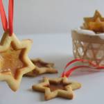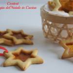 Ritagliate i biscotti utilizzando stampini di 2 misure diverse. Prima appoggiando sulla pasta il più grande e poi premendo su quella sezione lo stampo più piccolo. Io ho utilizzato la forma di una stella a sei punte tipica natalizia, ma qualsiasi forma va bene, date sfogo alla fantasia!