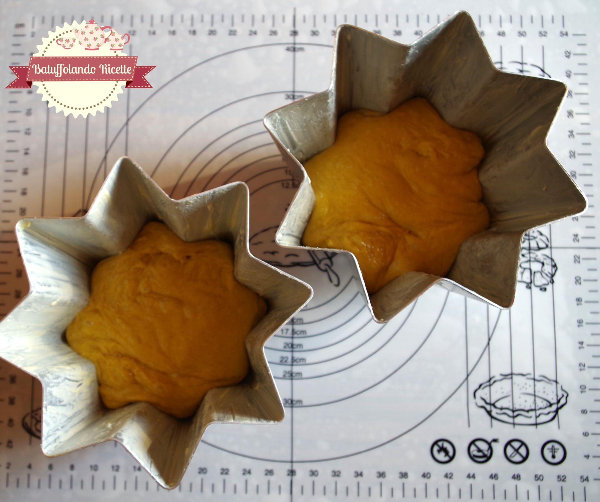 L’impasto deve arrivare a 2 cm. dal bordo. Le tempistiche cambiano rispetto alla forza del lievito, i miei pandori (inaspettatamente) ci hanno impiegato solo 4 ore (credo proprio di avere fatto bene a legare il lievito e a rinfrescarlo a trattarlo in quello modo :-)) ma di media le ore sono 6/8, ma possono volercene anche 12