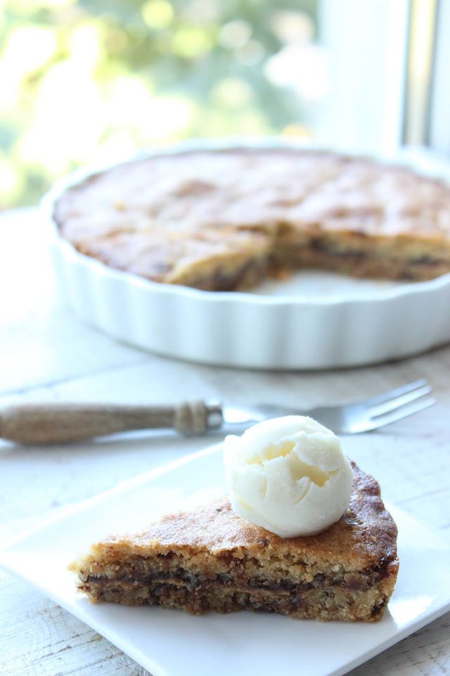 Lyuba Radeva ci propone una golosissima e super calorica crostata di chiara provenienza anglosassone/americana: la Crostata al Cioccolato ripiena di Nutella e Burro di Arachidi (Peanut Butter anv Nutella Stuffed Skillet Chocolate Chunks Cookie).