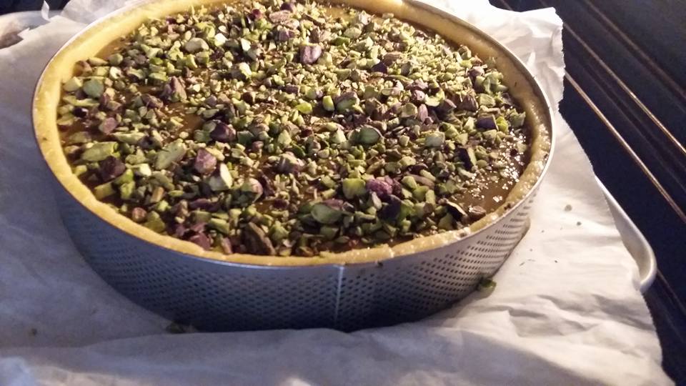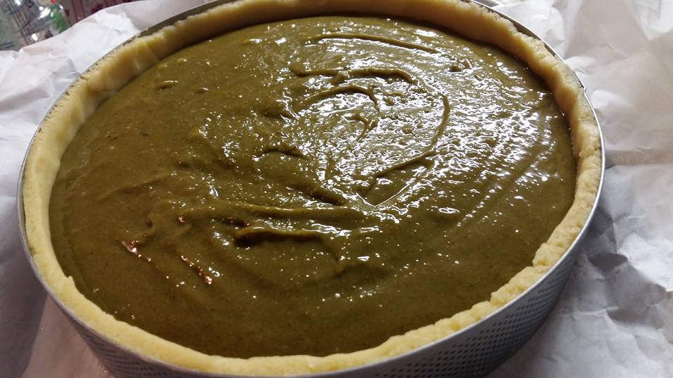 Colare la crema di pistacchio dentro gli stampi foderati di pasta frolla con nel fondo un leggero strato di confettura di ciliegie e cuocere in forno ventilato a 165°C per 25′ a valvola chiusa e poi con spiffero gli ultimi 10′.
