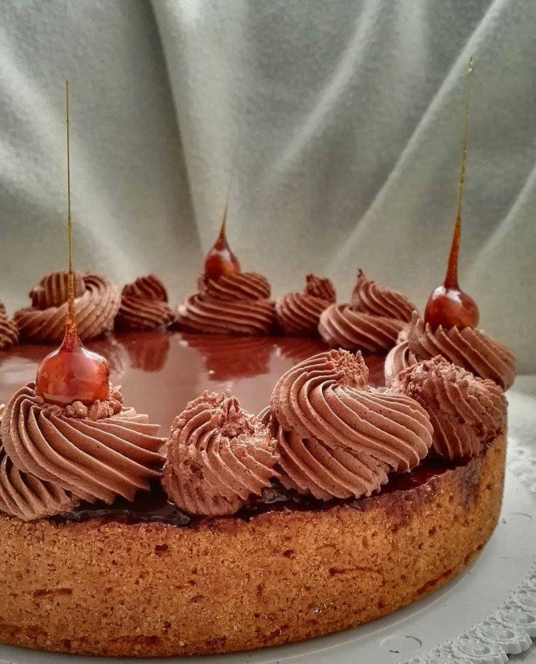 Colare sulla superficie della torta la parte di ganache tenuta a temp. ambiente e con l’aiuto di una spatola livellarla bene. Inserire la parte di ganache montata in un sac a poche munito di bocchetta a stella e decorare tutto il bordo della crostata facendo delle rosette. A piacere potete posizionare qualche nocciola caramellata sulle rosette di ganache.