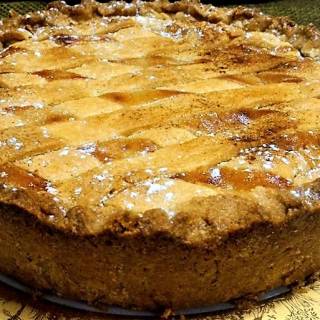 Sfornate la crostata, lasciatela intiepidire e aggiungete delle zucchero a velo in superficie.