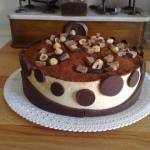 Una meravigliosa combinazione di bavarese al cioccolato bianco e nocciola, ganache al cioccolato fondente, e pan di spagna al cioccolato. Una vera sinfonia per il palato.