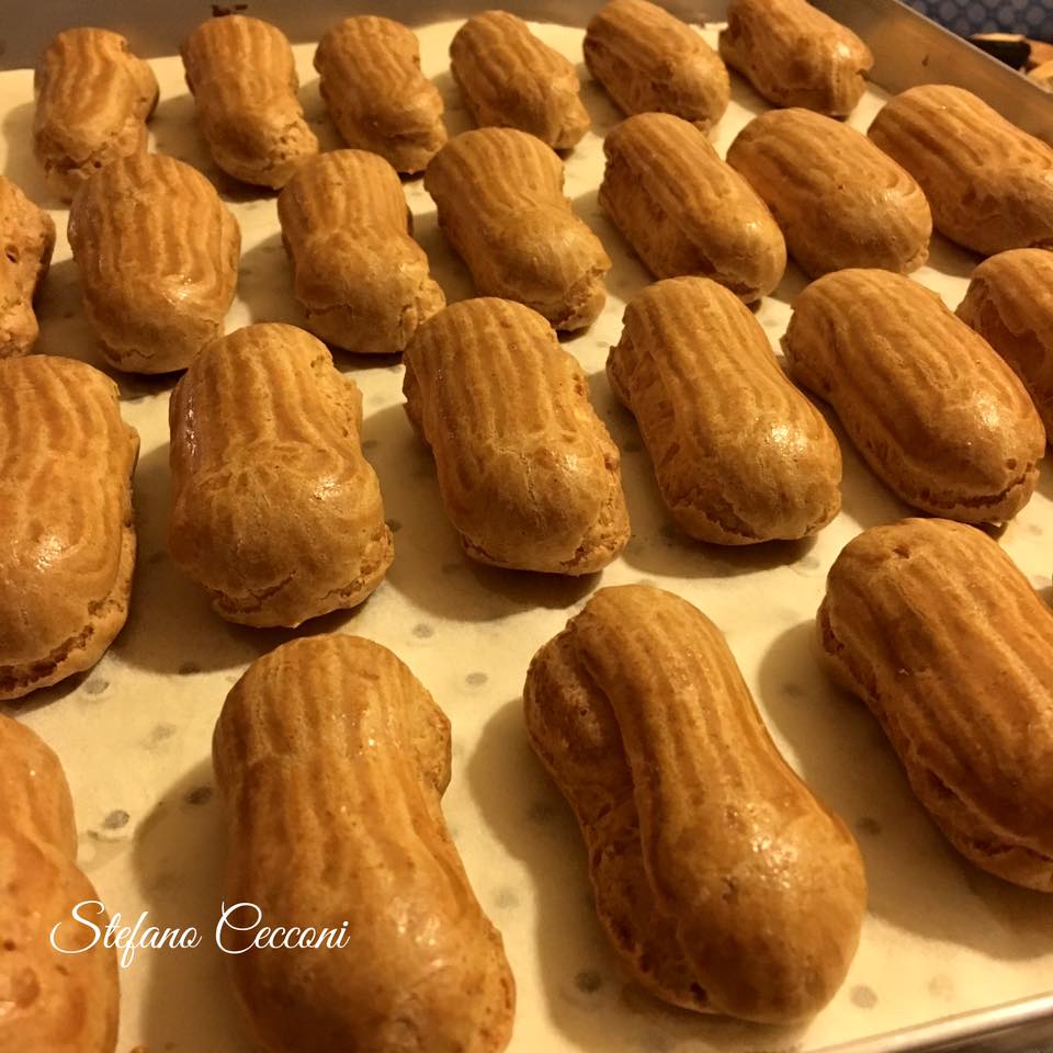 Il bravissimo Stefano Cecconi ci delizia con una nuova golosità tratta dal dal libro “Choux” di Luca Montersino: gli Eclairs Chanel… Ovvero una morbida pasta Choux farcita con una raffinata crema mousseline alla cannella e caramello.