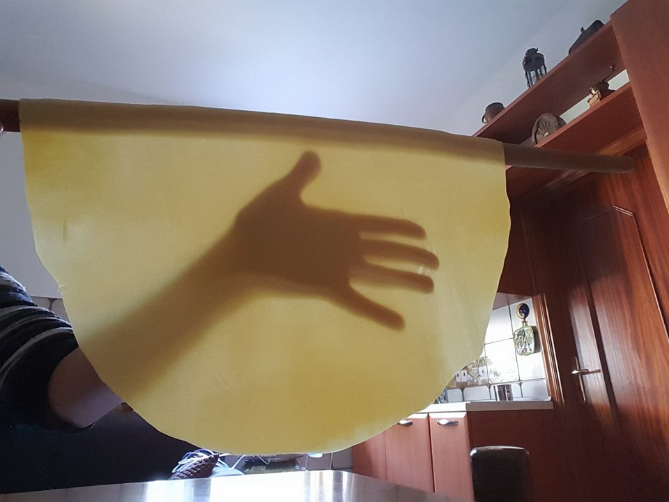 Riprendere la pasta e stenderla sottile col mattarello o con la sfogliatrice. Lasciarla asciugare 5 minuti.