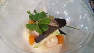 Fortunatamente veniamo piacevolmente distratti dallo chef altoatesino Theodor Falser, protagonista del primo showcooking in programma, il quale prepara per noi il Ceviche di Salmerino con zucca, navone rapa, mela verde e chips di riso selvatico e la Pancia d’Agnello con radice di luce, polvere di cipolla rossa e grano saraceno soffiato su crema di patate fermentate.