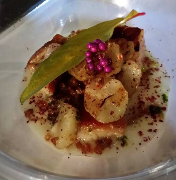 Due piatti molto diversi tra loro, ma che hanno in comune la provenienza delle materie prime: la Val Passiria. Dopo anni trascorsi in giro per il mondo, Theodor Falser è tornato a casa, tra le sue montagne e lì ritrova l’amore per la tradizione e mette a frutto l’esperienza acquisita.