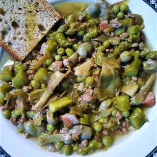 Io metto prima i carciofi poi gli asparagi, i pisellini e le fave.