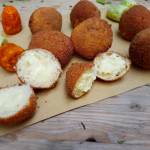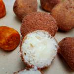 Passare le palline nell’uovo e poi nel pangrattato facendole rotolare, facendo una leggera pressione in modo che il pangrattato aderisca bene, quindi friggiamo a 170°C (l’olio di arachidi con il quale io friggo sempre è quello che mantiene il miglior punto di fumo), in friggitrice sempre meglio perchè mantiene costante la temperatura dell’olio, altrimenti un una pentola alta e stretta così da coprire interamente l’iris.