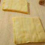2) Dividere la sfoglia del pan brioche in due rettangoli. Fare altrettanto con la sfoglia.