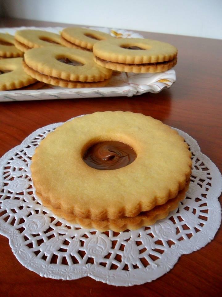 Con un tagliapasta rotondo del diametro di 10 cm formare circa 10/12 biscotti e metterli su una teglia ricoperta di carta forno, con l’impasto che avanza stendere un’altra sfoglia e ricavare altri 10/12 dischi dello stesso diametro, che si andranno a forare al centro con una formina tonda più piccola (4,5 cm di diametro).