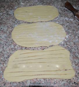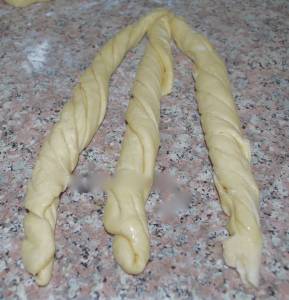 Dividere l’impasto in panetti di 100 g che a loro volta andranno divisi in tre parti con le quali si dovranno formare le treccine.